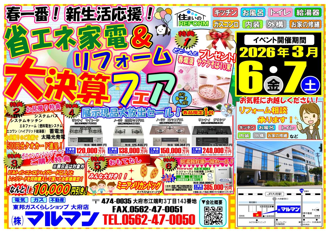 「春一番!新生活応援! 省エネ家電&リフォーム 大決算フェア」を